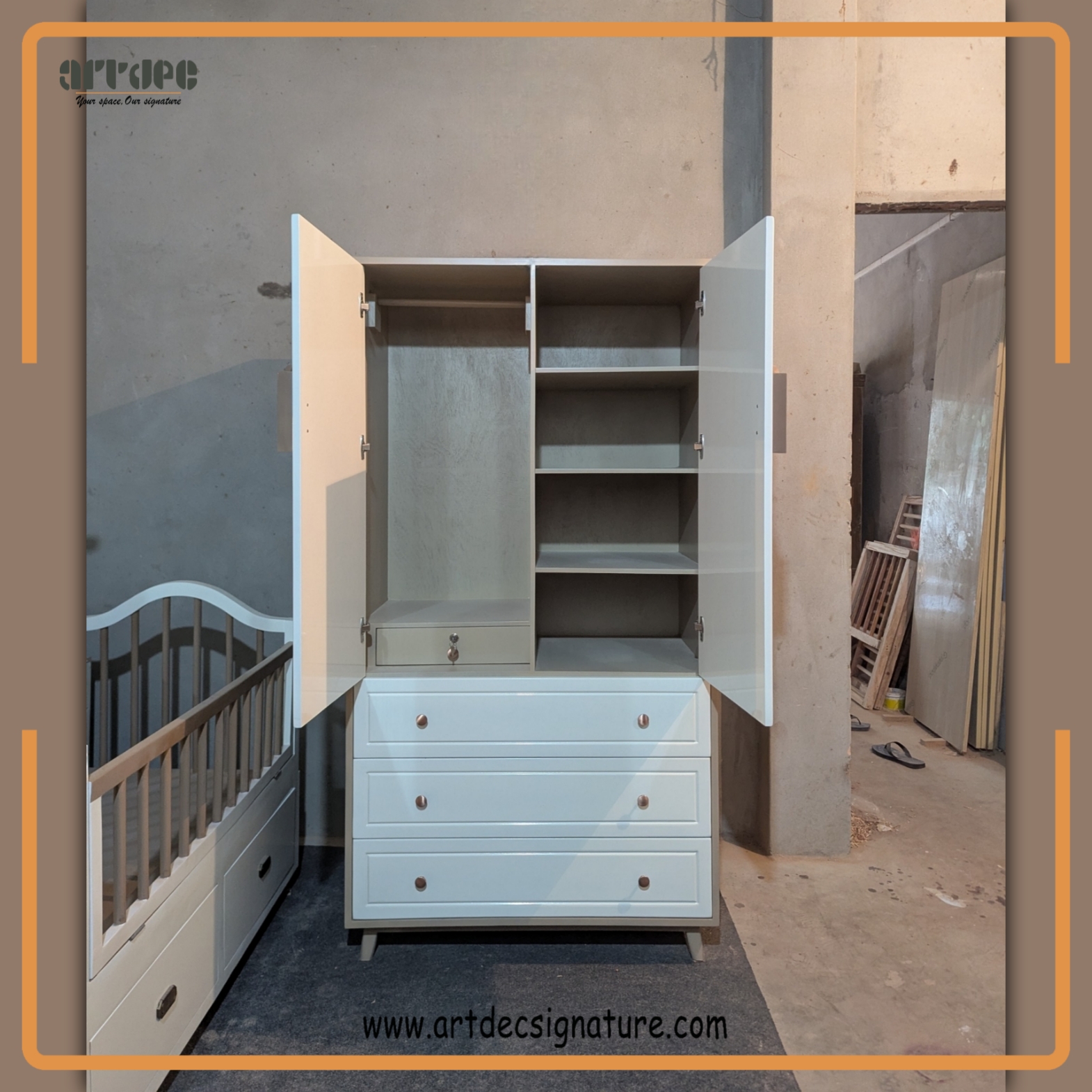 Organize your space with the Baby Wardrobe, designed to blend modern style with practical storage. Featuring multiple spacious drawers, this cabinet offers ample room for organizing everything from office supplies to household essentials. Its minimalist design and clean lines make it a versatile addition to any room, whether used in a home office, living area, or bedroom. Elevate your organization with this stylish and functional piece.