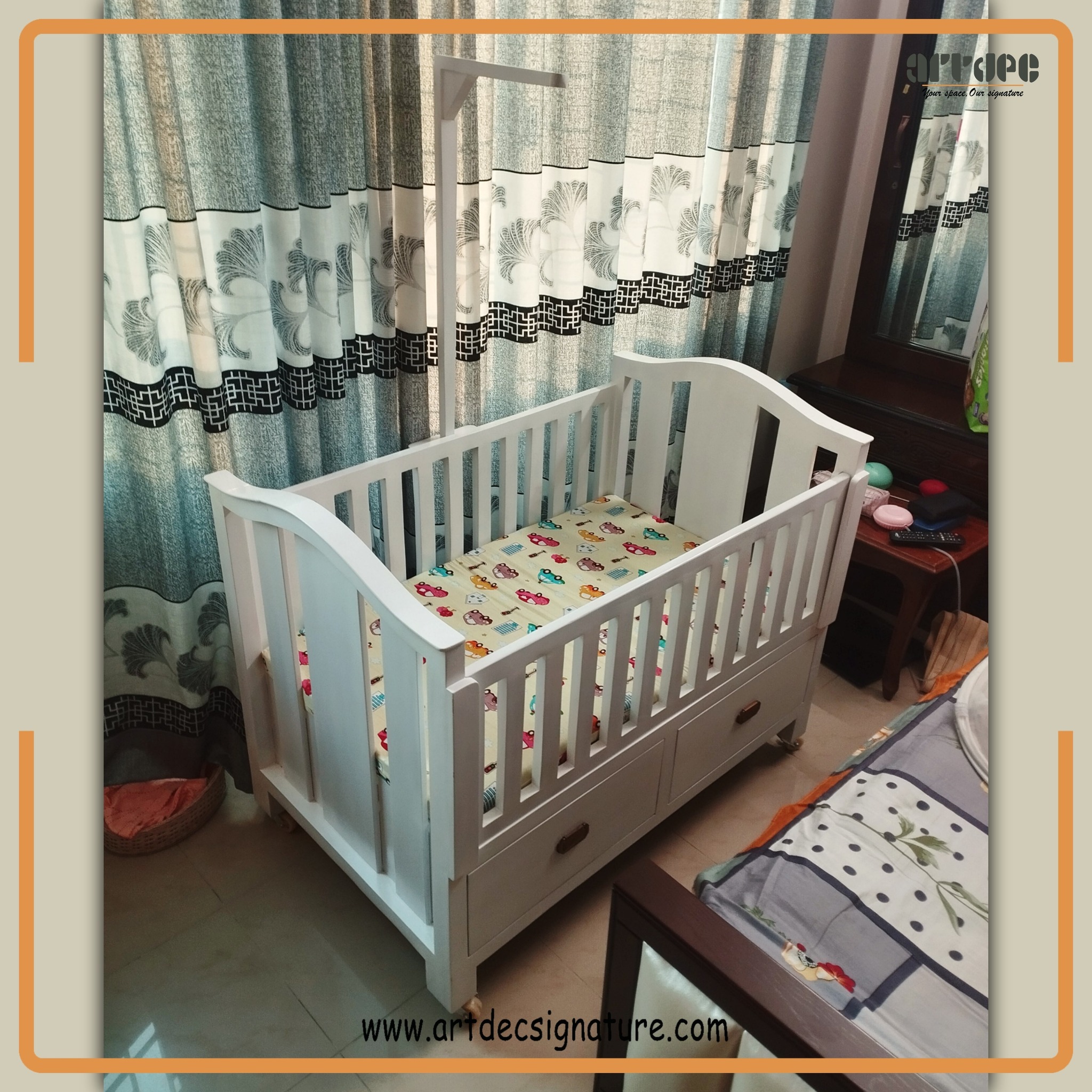 Maximize your nursery’s functionality with the Drawer Crib, a stylish and practical solution for modern parents. This clever design features built-in drawers beneath the crib, providing ample storage for baby essentials such as clothing, diapers, and bedding. Crafted from durable materials with a sleek finish, the Drawer Crib combines safety with organization and elegance. Enhance your baby’s room with this space-saving crib that offers both comfort and convenience, making it an essential piece for any well-organized nursery.